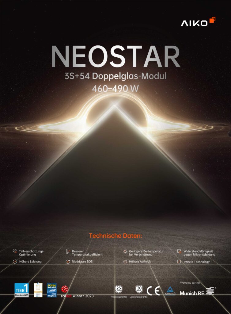 Bei Solarstromkonzepte setzen wir bei der Wahl unserer Komponenten auf höchste Qualität und maximale Erträge – mit AIKO Solar erhalten Sie modernste Solartechnologie, die sich durch hervorragende Effizienz, geprüfte Langlebigkeit und außergewöhnliche Leistung auszeichnet.